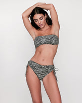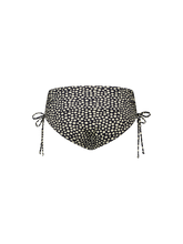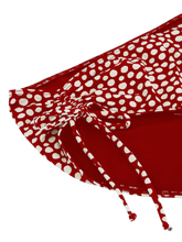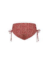 Bas de bikini taille haute à imprimé Petit Pois Blanc et Rouge avec liens spaghetti ajustables sur le côté. Le bas peut être porté haut ou avec un effet plissé sur les côtés pour un look contemporain. Parfait pour s'associer au haut bandeau assorti ou pour être mélangé à d'autres pièces de maillots de bain de la collection.