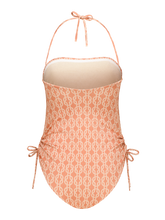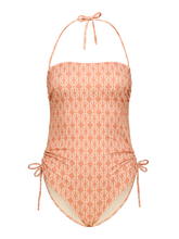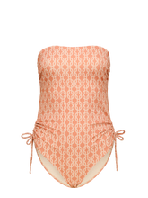 Il peut être porté de plusieurs façons : comme un maillot de bain classique avec des bretelles sur les épaules, comme un dos nu avec les bretelles nouées derrière la nuque, ou comme un bustier sans bretelles. Au niveau des hanches, de fines attaches permettent de froncer plus ou moins les côtés, pour jouer avec la ligne des jambes et créer un effet plus lisse ou plus froncé.